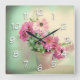 Relógio Quadrado Pote de Flores de Aquarela Rosa