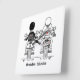 Um relógio na parede acrílico do aniversário de casamento de motocicletas que pode ser personalizado com os nomes dos casais e com quantos anos eles foram casados. O presente perfeito de aniversário de casamento para um casal de bicicleta e entusiastas de moto.