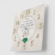 O Emerald e o Champanhe colorem os presentes personalizados do 20, o relógio. Digite suas 4 linhas de texto ou exclua. Nomes de Casais, Casamentos e ou datas de aniversário ou Sua Mensagem Especial. Ligue para o Zazzle Designer Linda: 239-9090 para criar isto para QUALQUER ANO, Ocasião ou outro presente de 20 anos ou material de 20, convites e muito mais.