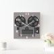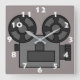 Um relógio de cinza de carvão moderno com números brancos e uma ilustração digital de um projetor de retrô-filme. Visite nossa loja para mais Relacionamentos com Mural e outros presentes criativos.