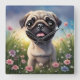 Relógio Quadrado Pug Flowers