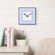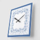 Um relógio quadrado bonito, com um delicado padrão floral azul Indigo num fundo branco que você pode mudar se quiser. Parte da coleção Posh e Painterly "Indigo".