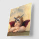 Este querubim pequeno bonito é um detalhe do "Sistine Madonna" pintado por Raphael em 1512-14. A pintura comissão em 1512 pelo papa Julius II em honra de seu tio atrasado, papa Sixtus IV.