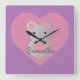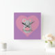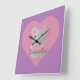 Relógio Quadrado Rato giro segurando coração.