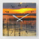 Reflexão por sol na fotografia do lago da Flórida e projetada em qualquer relógio de parede: relógios quadrados ou redondos com marcadores de hora e minuto. Disponível em grandes, médias e pequenas dimensões. Você pode mudar a sua imagem, mas os botões não estarão lá. #WallClock #Clocks #SunsetClock #SquareClock