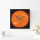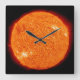 Un reloj de pared cuadrado con una imagen real del Sol.