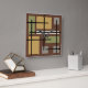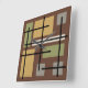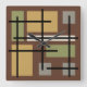 Esta design moderna, inspirada na idade atômica, tem linhas ousadas e formas geométricas para apelar a qualquer um que ama a abstrato de arte dos anos 50. As cores são cor laranja-de-ouro, verde, azul-turquesa, cinza contra um fundo marrom-terra.