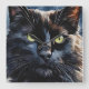 Relógio Quadrado Retrato de Aquarela de Gato Negro com Olhos Verdes