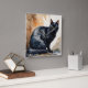 Relógio Quadrado Retrato de Aquarela de Pose Negra de Gato