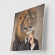 Esta design apresenta um retrato de um leão em um terno e gravata.