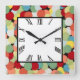 relógio quadrado de parede acrílica de 10,75" x 10,75" com uma imagem retrorativa divertida de pontos vermelhos, laranja, amarelos, verdes e azuis em preto e um relógio numérico romano em um quadrado branco com uma borda preta. Veja toda a coleção Nifty 50 Clock no DECOR | Seção Relógios. Este produto não está associado nem afiliado ao titular original dos direitos de autor.
