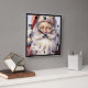 Um relógio com uma ilustração do estilo de vintage. Um retrato de Papais noeis com sua grande barba branca vestindo seu clássico chapéu vermelho de Papai Noel.