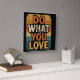 Design inspirado em Vintage com a mensagem ousada "Faça o que você ama" em faixas retrorreflectoras, perfeita para sonhadores.