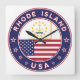 Crachá Rhode Island de Rhode Island com bandeira de Rhode Island e bandeira dos EUA, forma arredondada. Emblema de Rhode Island. Selo de Rhode Island. Coleção dos Estados Unidos.