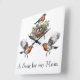 O Relógio de Pássaro Decorativo Robin, que é perfeito para a Cozinha, Sala de Estar, Quarto e Sala de Jantar. Este Relógio de Pássaros Robin da Mãe Cute faz um presente de Excelente para Dia de as mães, para o Aniversário da Mãe, ou para qualquer ocasião ou evento. A arte Robin Bird apresenta uma encantadora "Robin" empoleirada em seu Ninho do Pássaro e Pássaros Robin no Voo. Coloridos Robin Birds detalhados em matizes entusiasmantes, que adiciona um ar na moda, eterno ao resto de suas decorações. Faz um presente adorável para a mãe que é um Pássaro ou um Observador de Pássaros! O verso diz, "Uma Canção Para Minha Mãe." Personalize este Bird Clock para o seu conteúdo.
