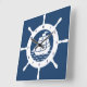 Relógio Quadrado Roda náutica do azul marinho e a branca