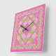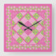 Relógio Quadrado: Rosa: Primroses, Bolinhas, Gingh
