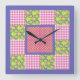 Relógio Quadrado: Rosa: Primroses, Bolinhas, Gingh