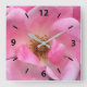Este relógio apresenta uma visão de perto de uma rosa rosa bonito.