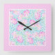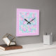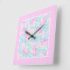 Relógio Quadrado Rosas Rosa Borboletas Brancas Polkas Wall Clock