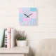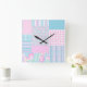 Um Relógio de Parede bonito e feminino, com um padrão Faux Patchwork de rosas rosa brilhantes sobre fundo azul-céu, pontilhado com pequenas borboletas brancas, agrupadas com Check Ginghams, Bolinhas e Padrões Striped. Parte da coleção Posh & Painterly 'Summer Days'. (Este padrão pode ser facilmente ajustado para ajustado qualquer dos relógios.)
