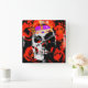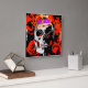 Relógio Quadrado Rosas vermelhas de crânio gótico