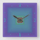 Relógio Quadrado Roxo em greve com verde/azul>Relógio de parede