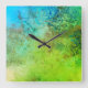 Relógio Quadrado Rustic Industrial Inspirated Art Green Blue Wall