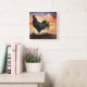 Relógio Quadrado Rustic Rooster Sunrise