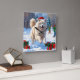 Relógio Quadrado Samoyed Correndo em Neve com Chapéu de Natal