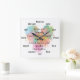 Crie um presente consciente para si mesmo ou para outro com este design de texto de oração da Serenidade num relógio de parede. Criada em tipografia elegante escrita sobreposta em um coração do estilo de aquarela digital abstrato pastel. As horas na face são indicadas em texto em vez de algarismos (ou seja, "doze")