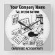 Contabilista, Auditor ou Contabilidade com a opção do nome e número da empresa. Inclui um fundo de rosto do relógio fraco.