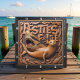 This highly dimensional square wall clock features a bold, heavily stylized illustration of a large tan shark with an open, toothy mouth and a happy, smiling brown seal swimming together. The entire design is rendered in muted brown and tan tones, strongly suggesting a deep carved relief or Engraved Wood Look, resembling aquatic wood or rock formations. The shark is positioned primarily behind the seal on the left, with its mouth open, while the seal is in the foreground looking forward with a friendly expression. They are surrounded by detailed, carved seaweed, kelp, and bubbles. The background is a dark wood panel with carved texture. The large, three-dimensional embossed text "BESTIES FOR LIFE" is carved across the top and partially down the right side in a bold, stylized font. The clock face features a simple clock face border with large, white, numbered tick marks (1 to 12) integrated into the outer frame. The artwork is surrounded by a thick, dark brown decorative border that resembles a black wood frame.