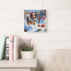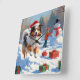 Relógio Quadrado Shetland Sheepdog Correndo Neve Com Chapéu De Nata