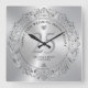 Relógio Quadrado Shiny Silver Swirls Circular 25 Casamento