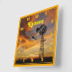 Uma foto de um Sunset Ouro com nuvens e uma Silhouette Windmill ao norte de Hutchinson Kansas EUA, em um CLOCK SQUARE.