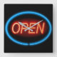 Trabalho de arte digital que representa um sinal luminoso de neon aberto.