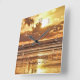 Um surfista solitário no Oceano Pacífico descendo em um glorioso pôr do sol de ouro.