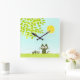 Relógio Quadrado Sol e Folhas e Gato Negro