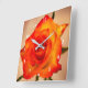Relógio Quadrado Solteiro Laranja Rosa flor Acristalino