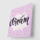Sonho - palavra inspiradora em fundo violeta pastel, tipografia para poster, t-shirt ou carta. Arte de caligrafia de pincel moderna vetorial. | Bigstock® - Todos os direitos reservados.