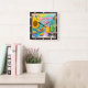 Este vibrante relógio de parede quadrada irradia "Summer Vibes" com um fundo de aquarela vivo de blues, amarelos e pinks. Apresenta um grande girassol, duas borboletas azuis brilhantes, óculos de sol quic, flip-flops coloridos, e duas bebidas tropicais convidativas, criando uma atmosfera lúdica e brilhante para qualquer casa.
