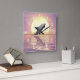 Uma cena ensolarada em 3d de um golfinho saltando da água em frente a um grande sol.