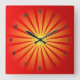 Um relógio de parede muito iluminado em raios solares amarelos e laranja. Muito decorativo! Escolha o tamanho e a forma do relógio, como preferir.