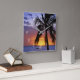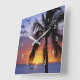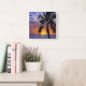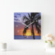 pôr do sol tropical com palmeira no relógio de primeiro plano de parede quadrada.