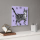 Relógio Quadrado Tabby Cat Gatos Crianças de Animais Púrpura Pastel