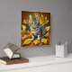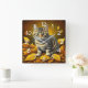 Gatinho de cinza listrado bonito brincando em folhas de outono.