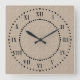 Relógio Quadrado Tan Cement Look Roman Numerals Wall Clock