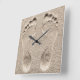 Aqui está um relógio de decoração de parede com um par de pegadas na areia em um design gráfico que parece areia real a distância e adiciona caráter e estilo a qualquer sala em sua casa. Projetado como um relógio ou relógio novidade que adiciona a uma casa de praia.
