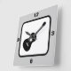 Obtenha um tema musical com este gráfico de guitarra acústica em preto e branco. Este relógio de parede quadrada é ideal para uma sala de música, um quarto adolescente, ou para qualquer guitarrista. Você pode mudar o fundo de cor deste relógio da prata padrão para qualquer outra cor na paleta Zazzle — basta clicar no botão laranja personalizar e editar o plano de fundo para escolher outro.